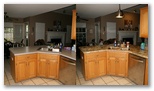 After much persuasion, Jim agreed to let me redo the countertops in our kitchen! YAY! We went to several different places but found the best price (and service if you can believe that) at Home Depot. Jim’s dad came over from TN to help tear out the old baby blue hideous formica. THANKS JOHN! Then the granite people came last week and installed. Jim and Grandpa John hooked up my pretty new sink then the following weekend Jim got to work on the light and backsplash. It looks SO GOOD! I love it! Looks like the cabinets will need a little work. I kinda like the color with the granite but they will definitely need to at least be refinished. But I might need to let Jim rest a while 🙂