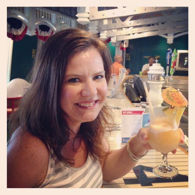 20130609Cruise -- me and my umbrella drink in the sports bar before dinner