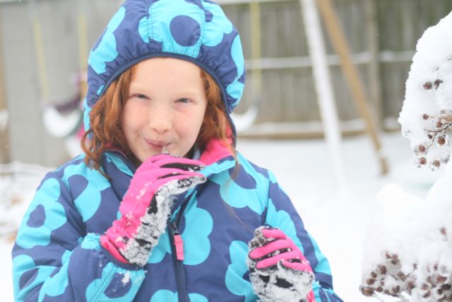 20131201Girls -- the girls were finding icicles and dipping them in the snow