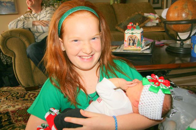 20131225Xmas -- Sydni holding the newest little cousin