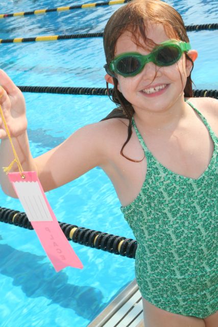 20140801Girls -- she did more mermaid-ing than freestyl-ing but she was happy about the pink ribbon