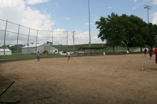 20150807Omaha -- Aunt Janet playing kickball!!!