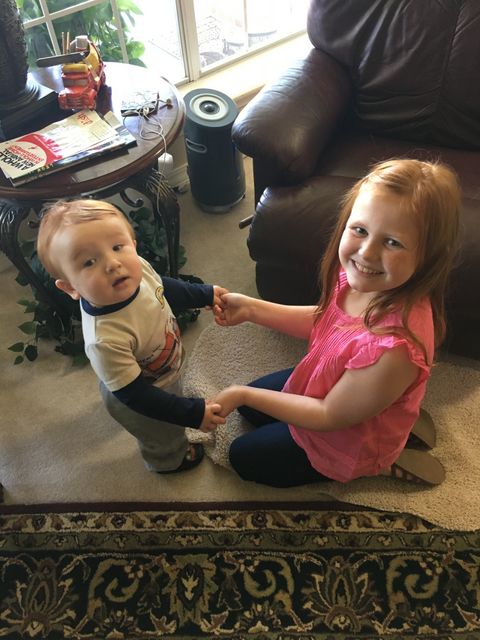 20160326Easter -- Averi helping with her other little cuz LP