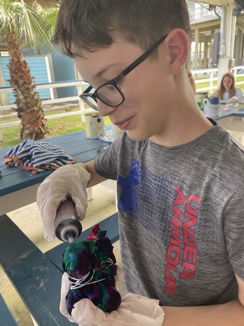 20200605CrystalBeach -- making tiedye shirts