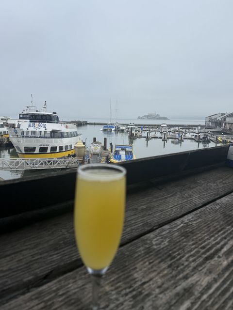 20250901TheGirls -- breakfast at pier 39 - thats alcatraz in the background!!!
